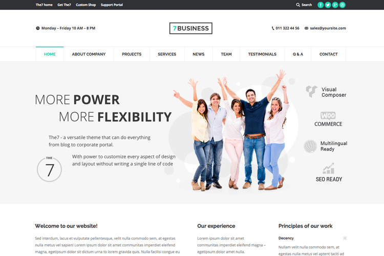 The7 comes with 30 (and counting) pre-made dummy websites complete with exclusive Slider Revolution and Visual Composer templates. They all can be imported in a few clicks, mixed and matched to become a solid foundation for your site.